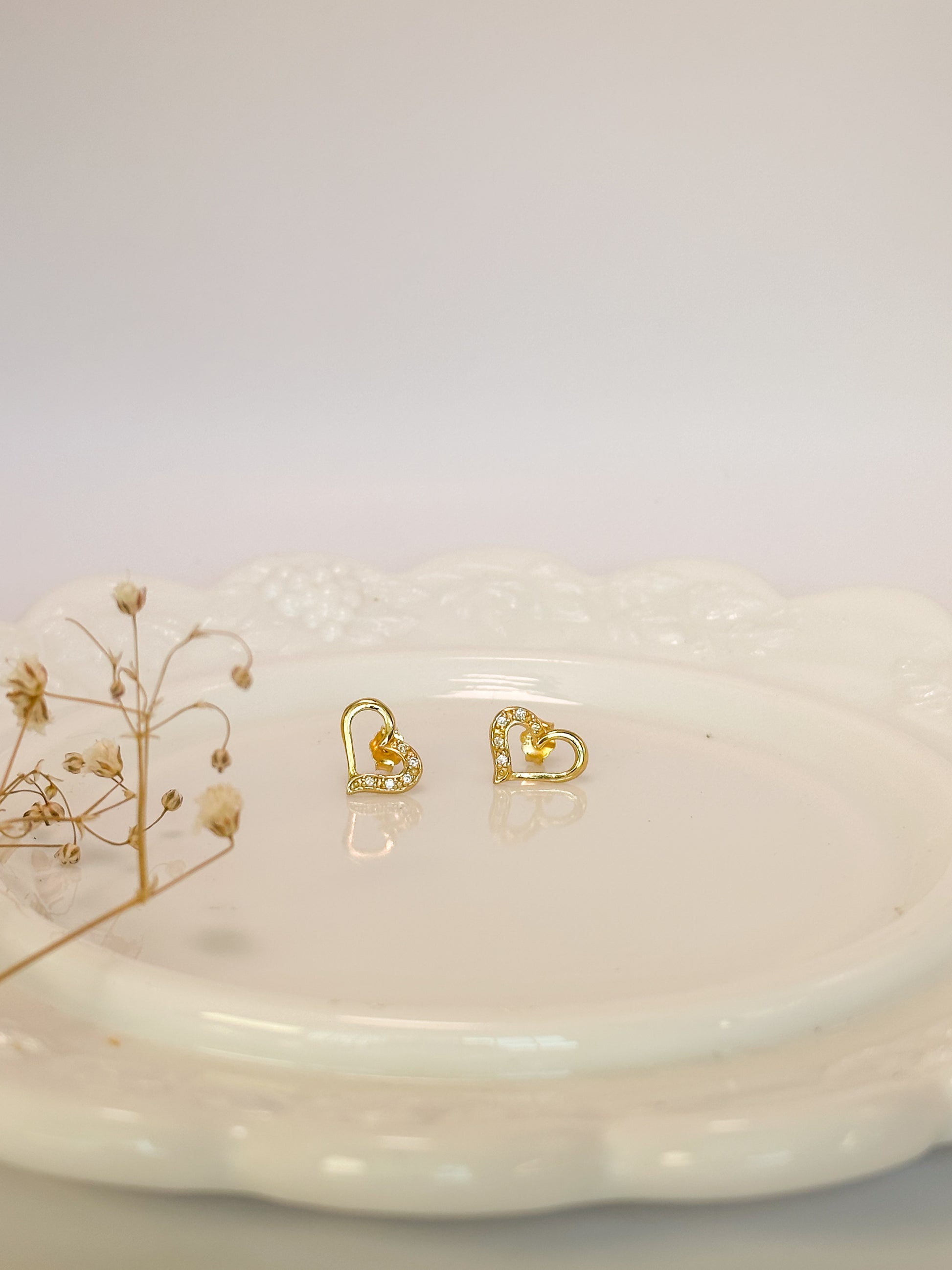 Aretes delicados con diseño de corazón asimétrico, adornados con pequeños destellos que realzan su silueta abierta. Una pieza romántica que transmite dulzura y luz en cada detalle, ideal para regalar o llevar contigo como símbolo de amor propio.
