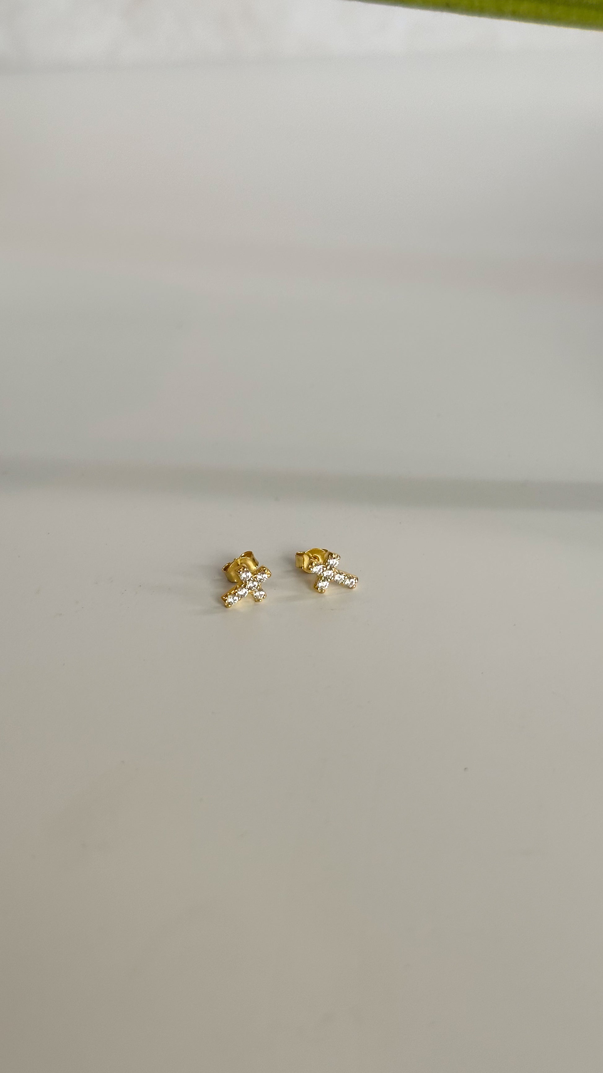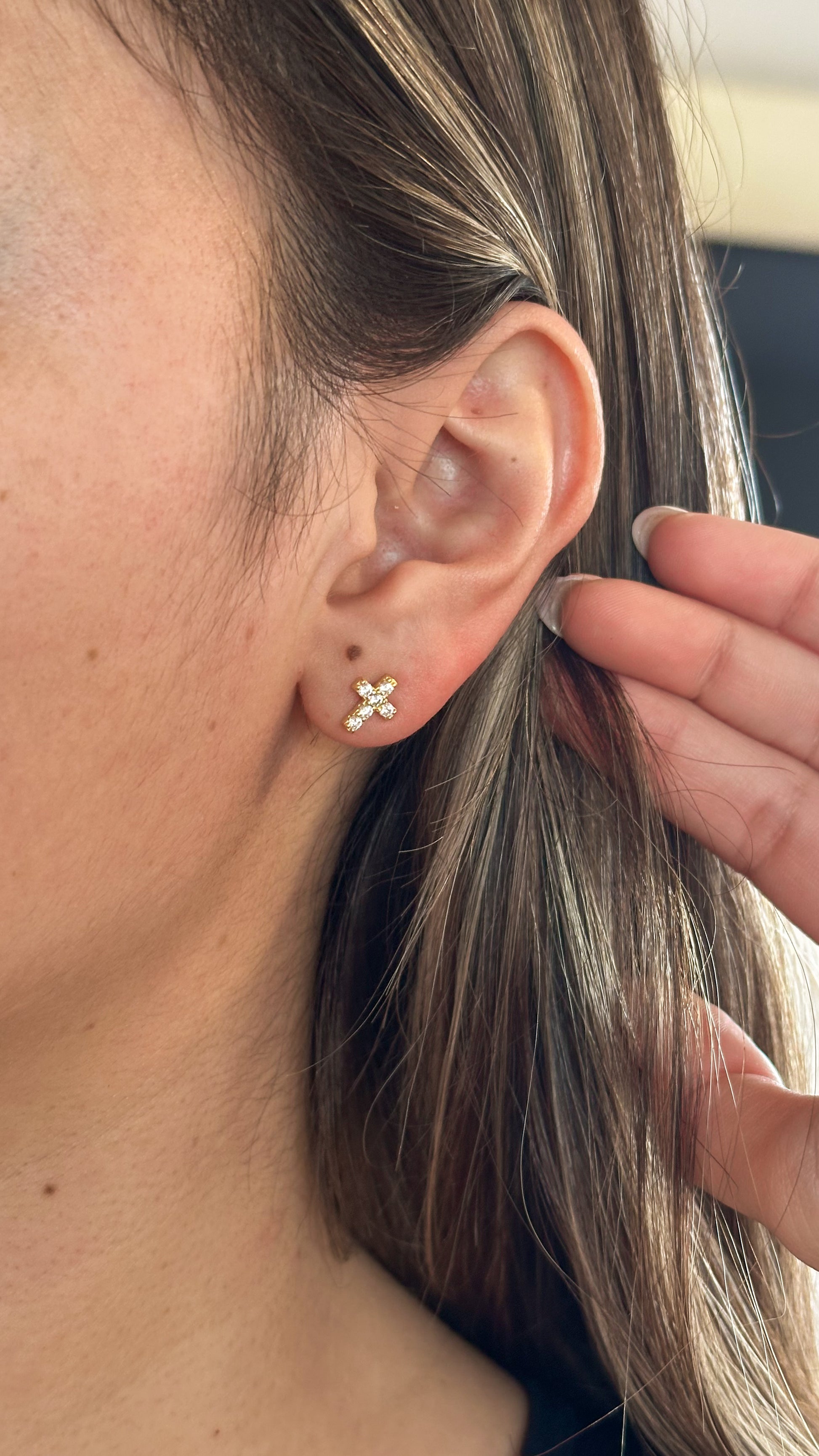 Aretes en forma de cruz con incrustaciones brillantes. Un diseño delicado y elegante ideal para uso diario o para combinar en múltiples perforaciones.