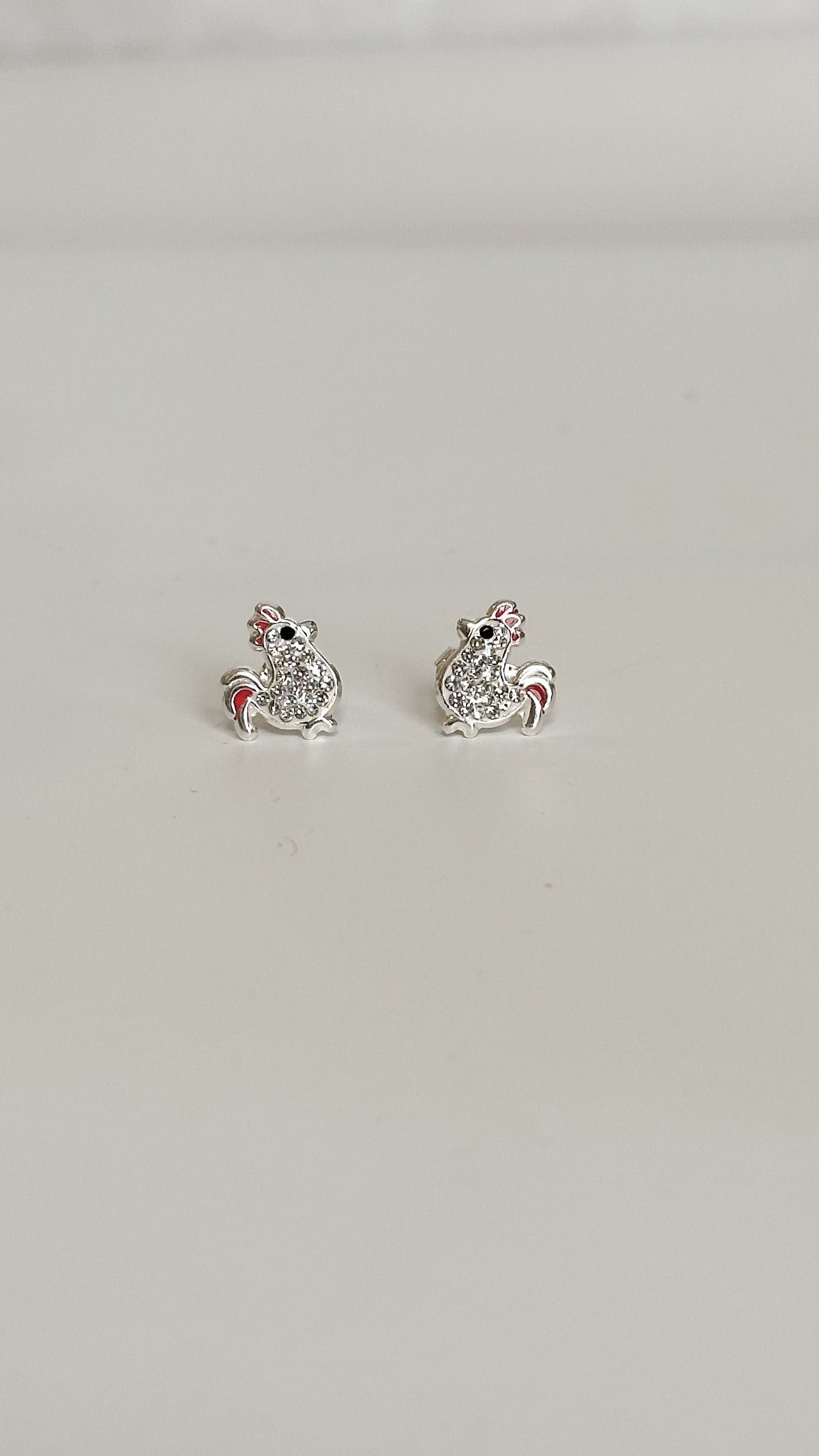 Aretes pequeños en forma de gallito con delicados detalles en circonia. Tiernos, brillantes y perfectos para darle un toque juguetón y único a tu look diario.