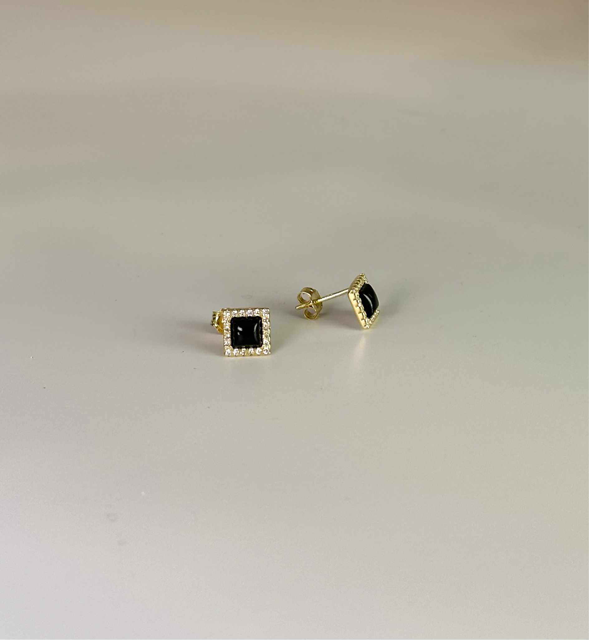 Un diseño sofisticado y atemporal. Su piedra central negra resalta con un brillo profundo, rodeada por un delicado marco que ilumina el rostro con sutileza. Perfectos para ocasiones especiales o para dar un toque elegante a tu día a día.