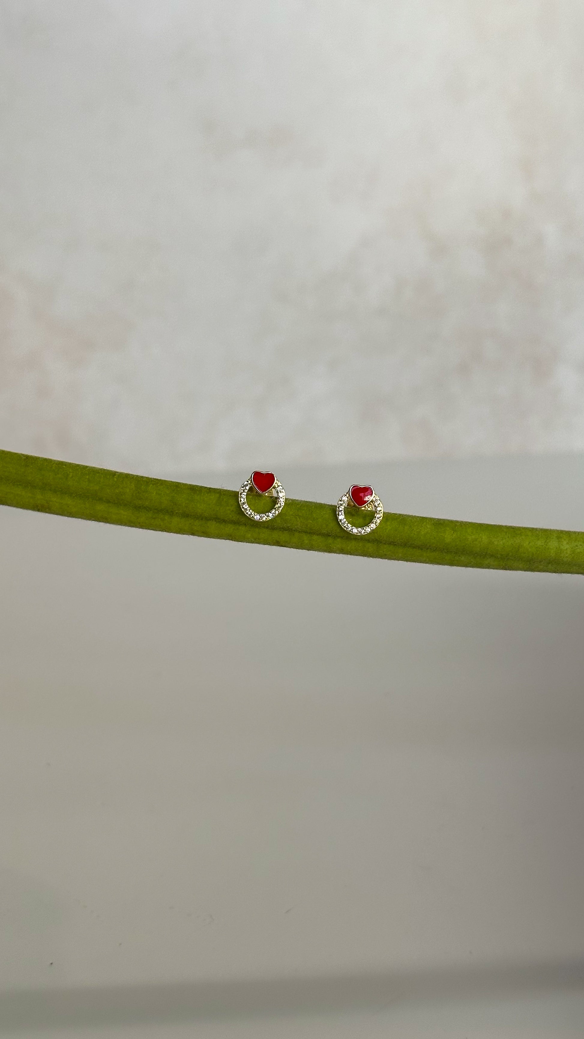 Aretes pequeños en forma de aro con corazón rojo esmaltado. Delicados, dulces y perfectos para uso diario o para regalar.