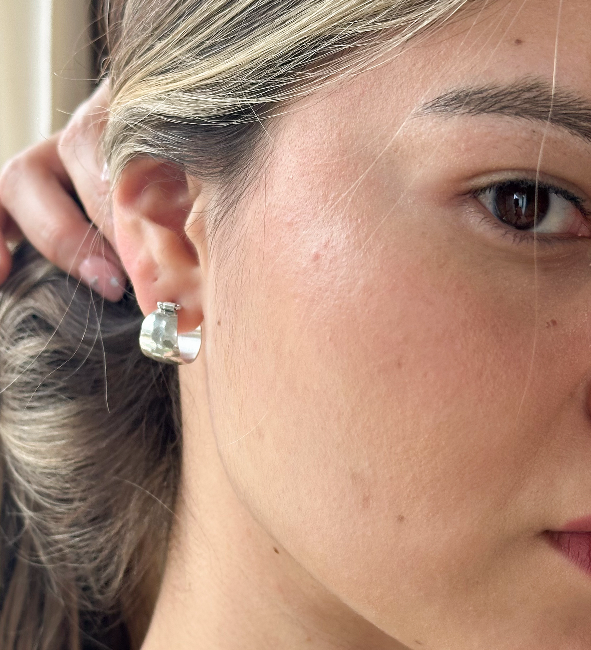 Su diseño martillado refleja la luz de una forma única, creando un brillo sutil y elegante que combina con cualquier look. Son perfectas para el día a día o para elevar tus outfits con un toque artesanal y moderno.