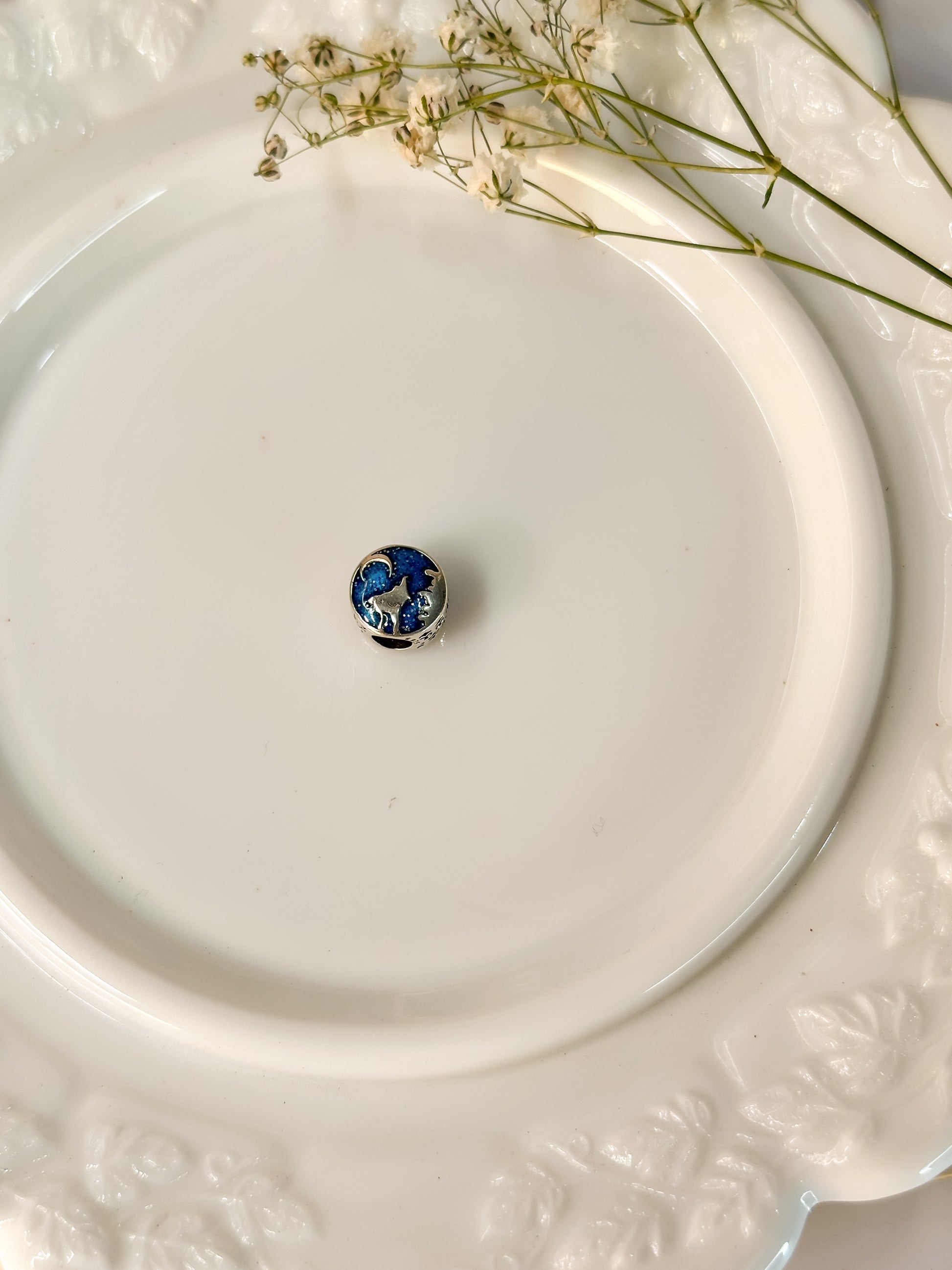 Un charm inspirado en la inolvidable alfombra mágica de Aladdin, sobrevolando un cielo estrellado en esmalte azul profundo. Esta pieza captura el espíritu de la aventura, la libertad y la magia de los sueños. Ideal para quienes aman los cuentos de hadas, los viajes y la fantasía.