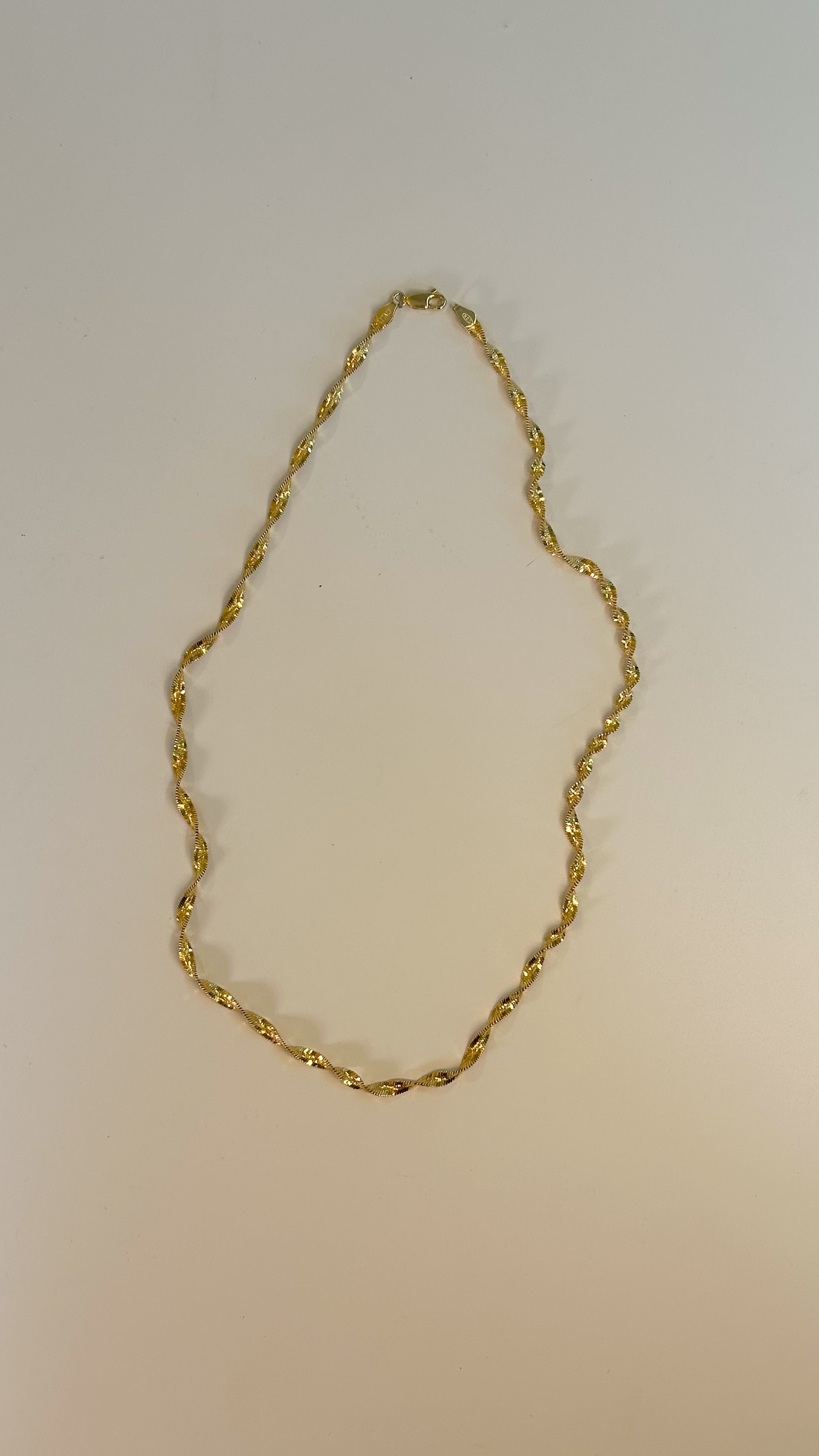 Su diseño entrelazado crea reflejos muy sutiles que aportan luz y estilo sin esfuerzo. Es una pieza versátil que podés usar todos los días o elevar para ocasiones especiales. Ideal para llevar solo o combinar con otros collares para crear tu propio look.