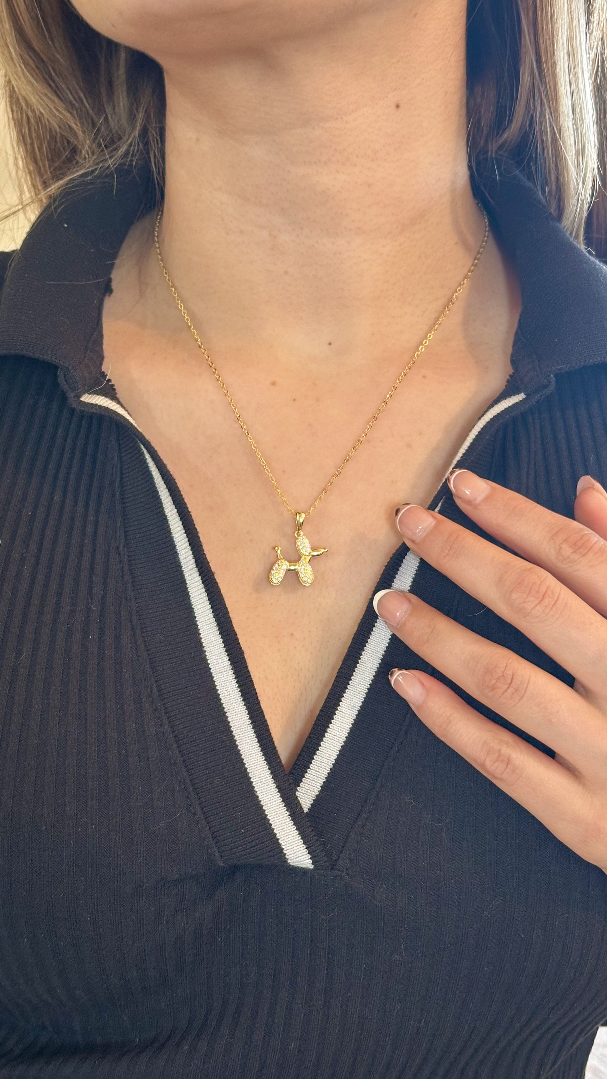 inspirado en la forma de un perrito tipo globo. Una pieza divertida, tierna y con un toque moderno. Ideal para quienes aman los detalles únicos y con personalidad. Perfecto para usar solo o en combinación con otros collares delicados.