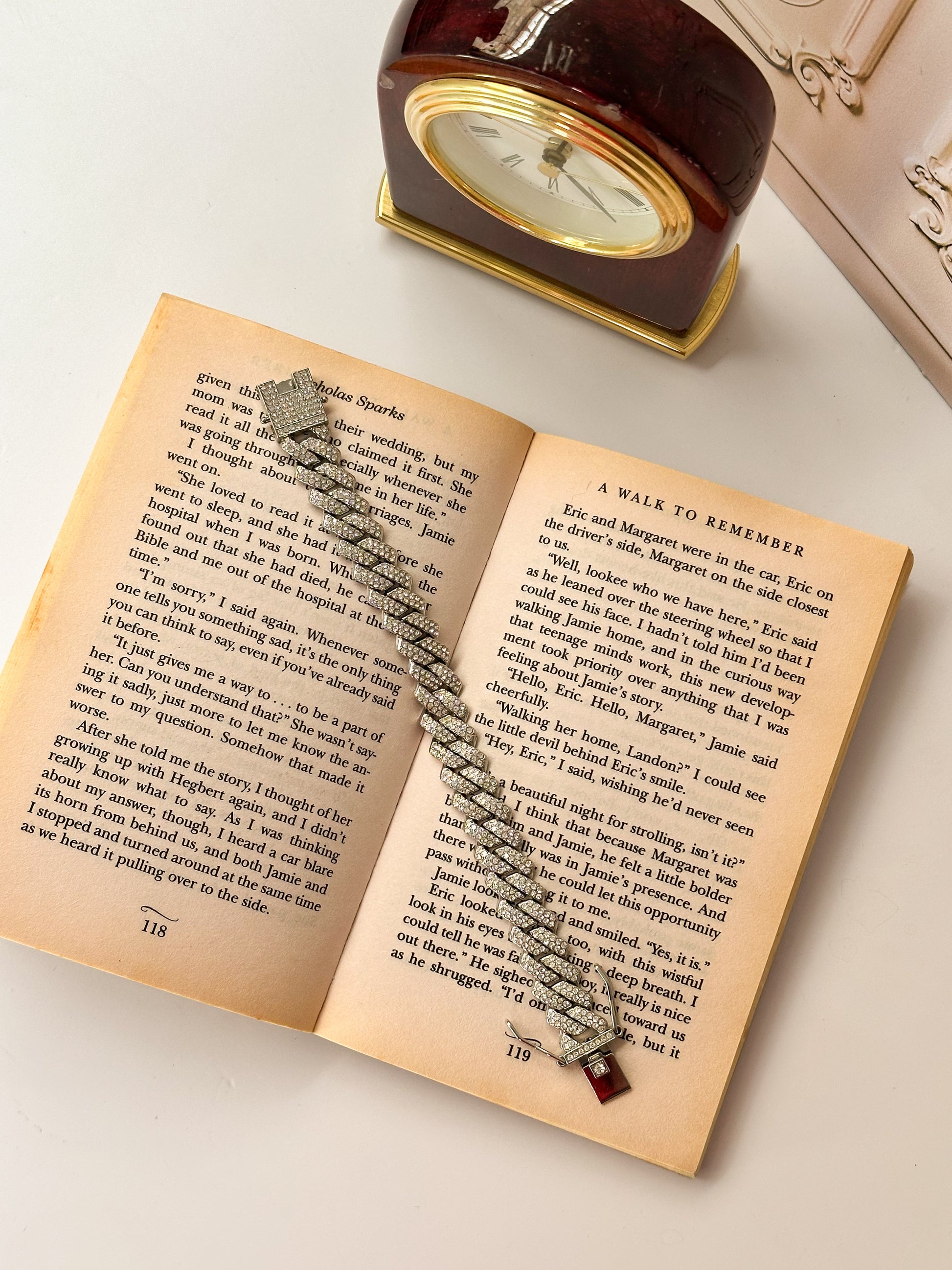 Una pulsera con presencia, elegante y estructurada, que combina fuerza y brillo. Su diseño de eslabones gruesos con incrustaciones en brillo delicado la convierten en una pieza ideal para elevar cualquier look con carácter.