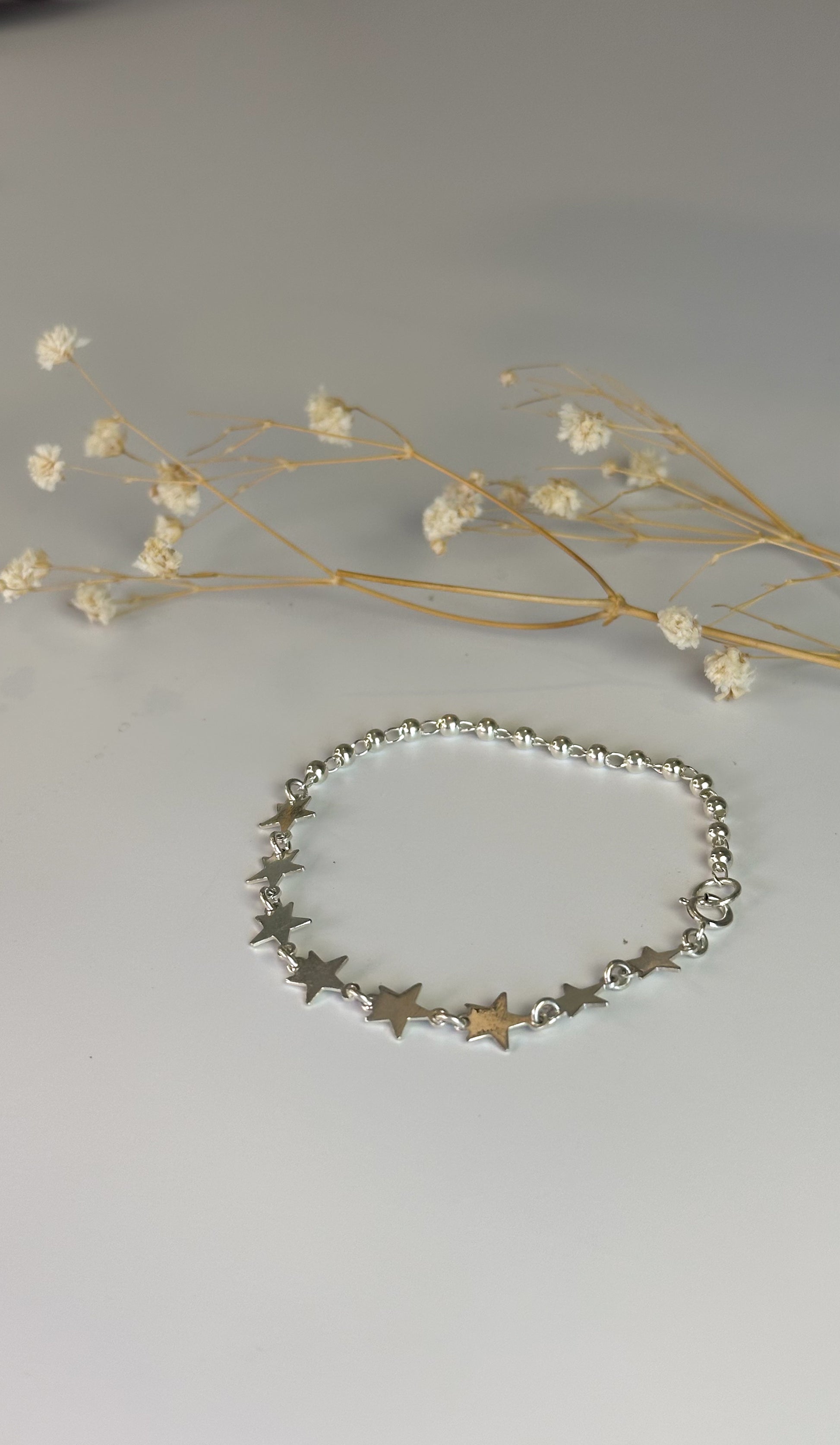 Una joya delicada y encantadora que captura la magia del cielo nocturno. Su diseño de pequeñas estrellas en plata 925 simboliza los sueños, la luz y la esperanza. Ideal para usar sola o combinar con otras pulseras para un look lleno de brillo y personalidad.